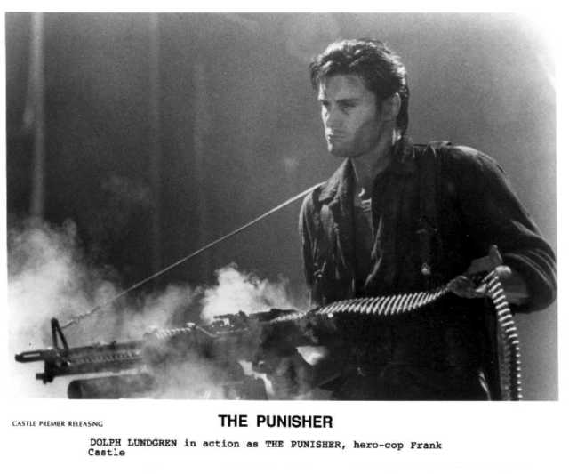 Lately Marvel Comics characters are making it to the screen with a reasonable chance of success.  While the company put managed to create a successful live action version of the Hulk in the 70s, in the 80s (and after unsuccessful attempts to create similar shows for Spider-Man, Captain America and Dr. Strange) the idea of additional adaptations seemed unlikely.  Then Tim Burton’s Batman hit the screens and superheroes were hot properties again.  Somehow Marvel Comics got hooked up with Roger Corman’s New World Pictures, of all the possible companies, and New World put cheapie versions of Spider-Man, The Fantastic Four and The Punisher in the works.  The mid-to-late 80s were a great time for the Punisher character, who started off as a Spider-Man foe in 1974 to great success, and then repeatedly appeared in guest shots and finally his own mini-series.  The mini-series was a hit, so he was given his own regular series, which soon blossomed into several other series.  The letters page was full of news of the coming film adaptation, which was to star Dolph Lundgren (Bridge of Dragons), fresh from his breakout role in Rocky IV (and affordable again after his first lead role, Masters of the Universe, bombed).