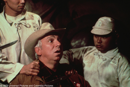 This is not to say that there aren’t comedic moments. Deezen and Hamilton on the Ferris wheel get a ton of laughs, as does Beatty demolishing his house in an effort to destroy the sub. Warren Oates (Race with the Devil) is very funny as a crazed army officer who believes there are secret Japanese airbases in the alfalfa fields , Robert Stack (Bwana Devil) makes a wonderful, exasperated straight man as General Stillwell, and Slim Pickens (The Howling) is a great as a tree farmer kidnapped by Toshiro Mifune’s (Drunken Angel) sub crew. Aykroyd is at his pompous best as a tank Sgt. prone to impromptu pro-American speeches, though Candy and McRae are stuck with an unfunny racism skit, while Belushi’s part consists of him mugging for the camera. Still, all of these talented performers can’t help the scattered, rambling script or the lackluster direction, which focuses more on the FX and hardware than on successful comedy.