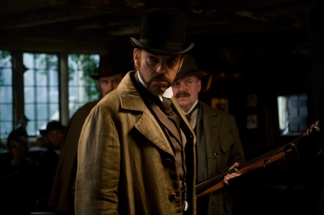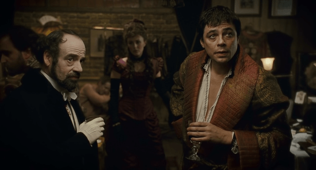 It is amazing how little mileage the film gets out of its excellent cast, with the main exception being Hugo Weaving, who steals the show as the Inspector. Del Toro is decent; in many ways he’s perfectly cast as the original Lawrence Talbot was also a beefy sad sack, but the film is long enough and he, unlike Lon Chaney, is a good enough actor that more could easily be done with his character. Blunt is given next to nothing to do, and while Hopkins clearly enjoys munching on the scenery in his scenes, his character’s motivations make so little sense and change so often that it is hard to take him seriously. The special effects are very much mixed but, aside from a really awful and completely unnecessary computer generated bear, they’re passable. The make-up effects are very good; it’s a shame we don’t see more of them. The film definitely suffers from the overuse of desaturated colors, giving the film a washed out look that is hard on the eyes and makes the night scenes hard to follow.