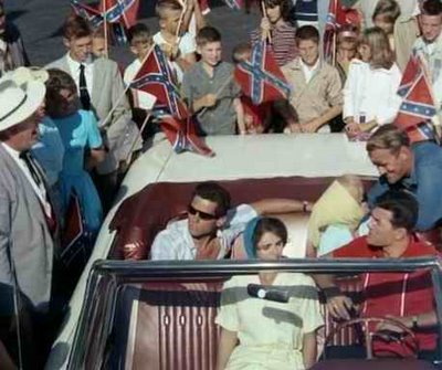 Terry Adams (Playboy Playmate Connie Mason, returning from Blood Feast) picks up Tom White (William Kerwin, another Lewis/Friedman regular), a teacher stranded on a deserted stretch of Southern highway by a break down.  Couples Bea (Shelby Livingston, Nude on the Moon) and John Miller (Jerome Eden, Blood Feast) and Beverly and David Wells are driving down that same stretch of highway while on vacation.  The film opens with two  yokels-one in a tree watching the road, the other hiding near a crossroads.  When a car with Northern plates appears (the young couples) the tree yokel gives out a big rebel yell and the road yokel quickly puts up a handmade detour sign, fooling the Northerners into driving into town.  Our yokels repeat the process for Terry and Tom, and the happy residents of Pleasant Valley greet the strangers, who they want to be their guests for the town’s Centennial.  Mayor Buckman (Jeffrey Allen), who leads the welcome party, seems friendly enough, but gets insistent when Terry and Tom suggest that they need to move on.  The young couples, especially the Millers, who quickly find locals to take interest in, seem content enough to sit back and enjoy the festivities.  The town will cover all expenses, the guests are given the best rooms at the local hotel, and town folk will provide escort to the Centennial events.  Of course, by now you’ve noticed that 1865, 100 years earlier than the film’s 1965 setting, is a very strange date for a Southern town to celebrate.  The  children in town swing around tiny nooses and everyone seems ready to let loose a big stage laugh every time they mention that the “Guests of Honor” are invited to the town’s big BBQ…..