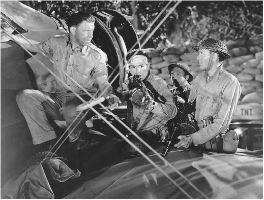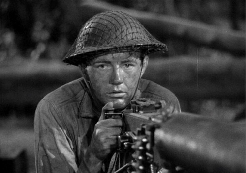 What sets Bataan apart is that it is about a doomed delaying action, so the focus is not on the men winning, but on their sacrifice, buying the other retreating defenders time, and on the cruelty (and craft) of their Japanese opponents. One by one the Japanese pick them off, some, receiving gruesome deaths by swords and hanging, as well as sniper fire and being riddled with bullets by aircraft, in death scenes far more explicit than typical for the time. The depiction of the Japanese as an unseen opponent stalking in the jungle is taken so far as to become silly; even when the patrol is reduced to just a handful of men, the Japanese use the old Hamlet trick of advancing under the cover of tree branches instead of just charging in (strange, considering the Japanese reputation for sometimes suicidal charges). There’s also an amazing amount of racial and ethnic slurs directed at the Japanese, common for the time but startling now.