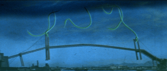 First communications satellites disappear. Then, all over the world, diamonds are stolen-including from international diamond thieves! Enormous, carbon devouring space jellyfish are the culprits-but will they stop at diamonds and coal and move on to other sources of carbon, including all life on Earth? Will Inspector Kommei (Yosuke Natsuki, who would play a cop in Toho’s other 1964 kaiju epic, Ghidorah the Three Headed Monster) figure out who Mark Jackson (Robert Dunham, Godzilla Vs. Megalon) is, and can he foil the international diamond thief cartel? Will these two plot threads ever intersect in any meaningful way?