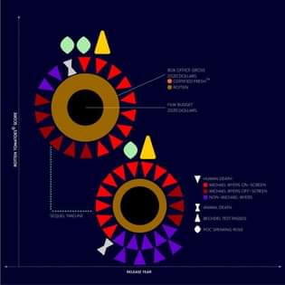 What happened? Well, we not only made it every week for 11 weeks, we did the full 12 weeks by watching Halloween (1978) a second time and closing out the week before Halloween with Halloween (2018). Everyone had a blast. We turned out to be very interested in collecting data, which resulted in things like tracking how many pickled foods showed up in jars in each film (don’t ask) and how many animals died. One of our members turned the data into a lovely infographic at ampersand.m.studio. You can see the results in their original format here: